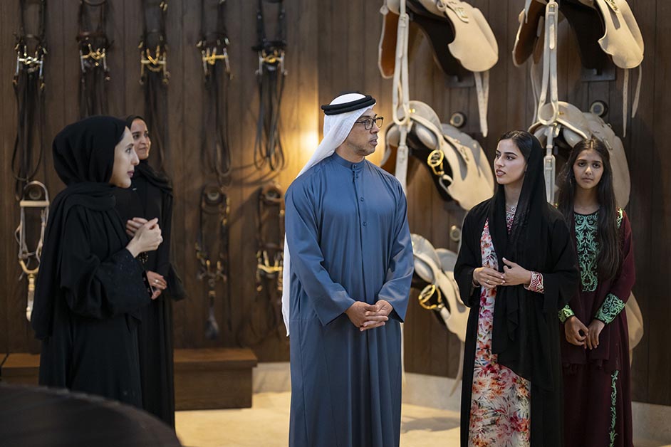 قام سمو الشيخ منصور بن زايد بجولة في مرافق الصرح الجديد، شملت “معرض الفروسية” الذي يضم واحدة من أبرز المجموعات الخاصة في العالم، تحتوي على أكثر من 173 قطعة أثرية وفنية نادرة تمتد لأكثر من ألفي عام، وتوثّق تطوّر الفروسية وتنوّع مدارسها بين حضارات الشرق والغرب، مجسدةً العلاقة الرمزية العميقة بين الإنسان والخيل.