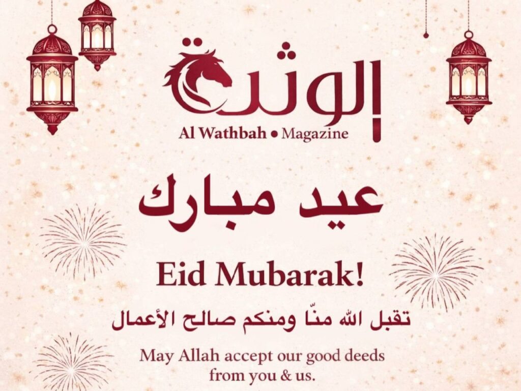 تتقدّم مجلة الوثبة بأصدق التهاني وأطيب التبريكات إلى قرائها الكرام بمناسبة عيد الفطر السعيد.